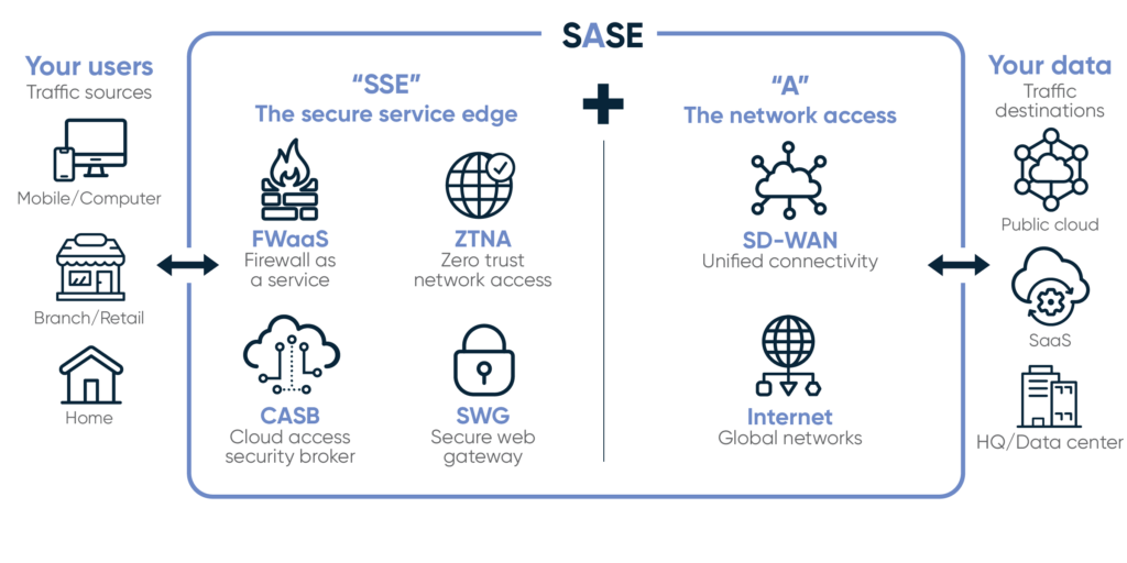 But wait, there’s more! Enter the Secure Service Edge (SSE)—the guardian angel of data highways. It combines the best of cloud and network security, creating a superhighway for your organization. And the pièce de resistance? A unified solution called Secure Access Service Edge (SASE). It’s like having a Swiss Army knife for your network needs—streamlined, secure, and ready to conquer the digital peaks.